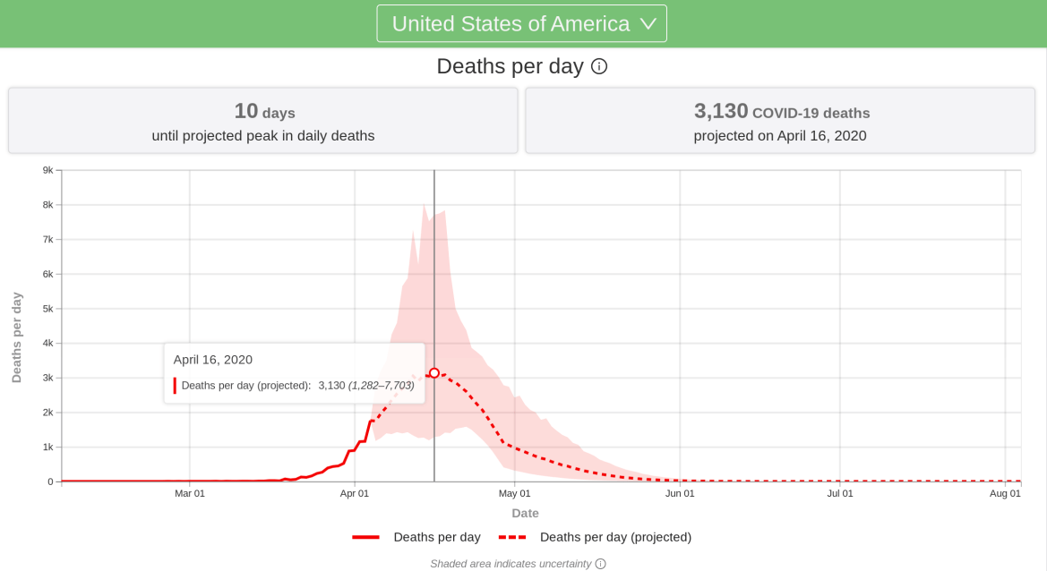 US death peak is still 10 days away and will be 3 times of today