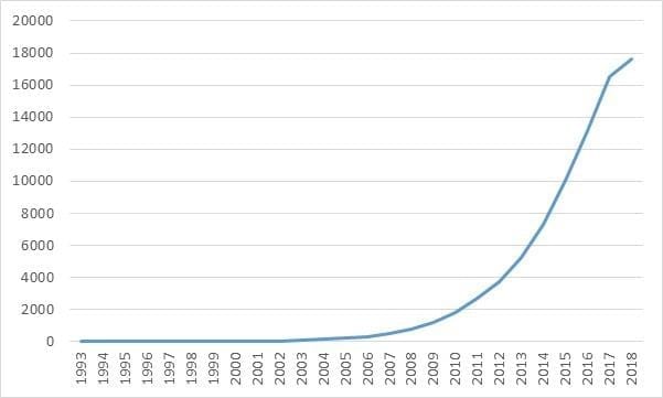 It took over a decade for this concept to be fully appreciated by experts. In March 2008, Allan was given the Stockholm Water Prize by the Stockholm International Water Institute. It was for bringing the concept of virtual water to the fore and bringing out the close relationships between crop production, economics, and political processes. You can see how it wasn’t until the latter part of the first decade of the 2000s that “virtual water” was being cited.