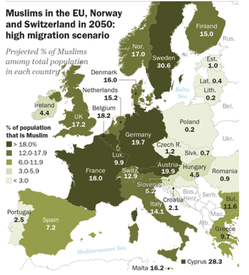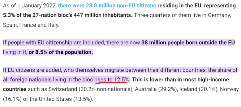 In terms of demographics, this means the share of foreign nationals in the EU (mostly from Islamic countries) is now close to 13%.