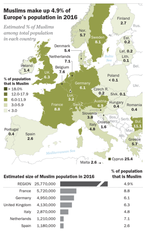 And the numbers have been rising to a point where Islam is the second-largest religion in Europe by a wide margin.