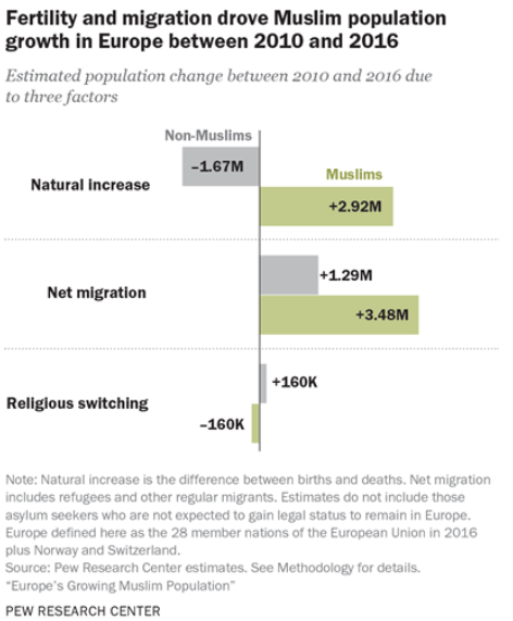 Conversions in Europe are not really a factor, although the article in the Tehran Times would have the reader believe so. The real factors are high fertility rates and influx.