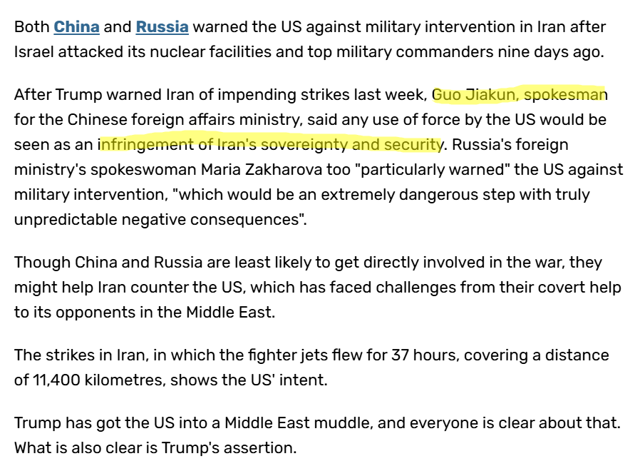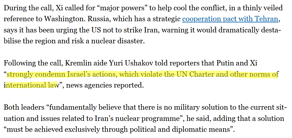 Xi and Putin also had a call to discuss the situation before the US attack.