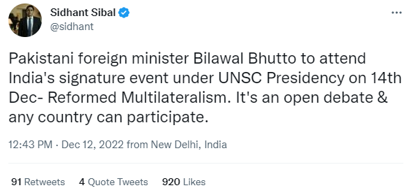 In a session where India wanted to showcase its geopolitical power for a seat in the UN Security Council, the Indian side foolishly allowed the Pakistani delegation to enter the event which was designed as an "open debate".