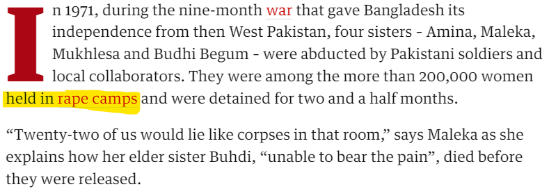 In fact, 200,000 women were kept in "Rape Camps" bythe Pakistani Army!