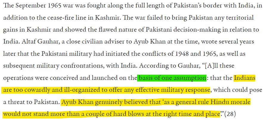 The most glaring example was that of the 1965 war. The Pakistanis attacked India based on two main assumptions: