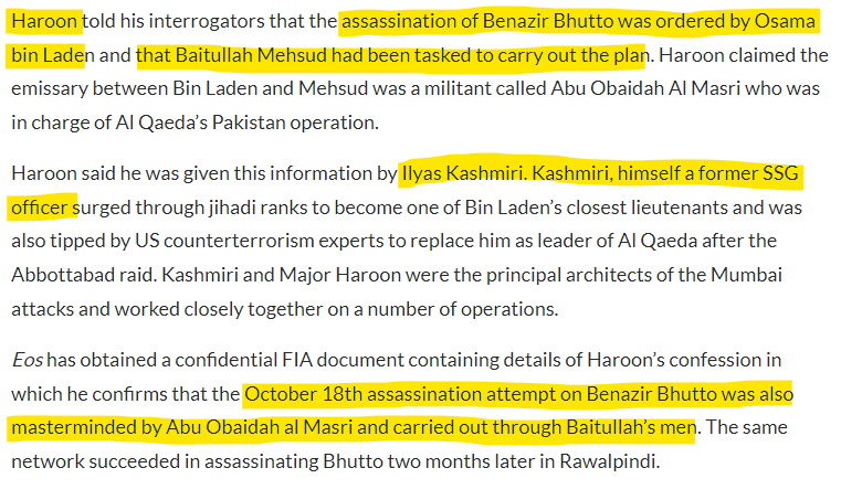 Major Haroon was the spearhead of the Mumbai Attacks. Osama Bin Laden was of course found living in a safe house called Waziristan Haveli just 1300 meters from the Pakistan Military Academy in Bilal Town, Abbottabad, Khyber Pakhtunkhwa, Pakistan, a high-end suburb where many retired military officers live (Source).