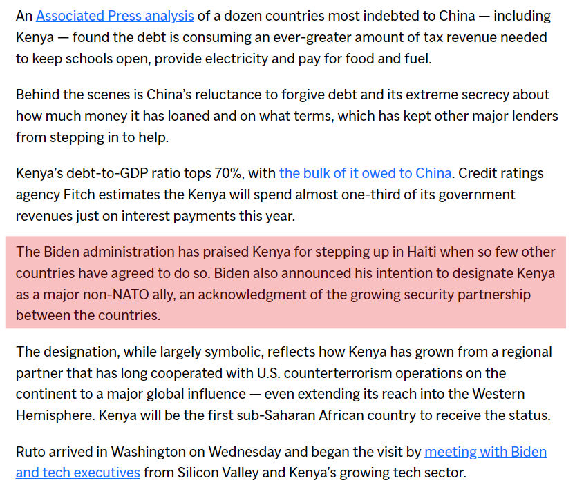It is very clear that the US is trying to lead in Africa and supersede China. Whatever China has done, the US is trying to countermand that and take control. Kenya is a classic case of how the British would uproot Indian allies of important Indian kingdoms by simply granting audiences to the target kings and giving them some change to be happy with, lest their military might come knocking.