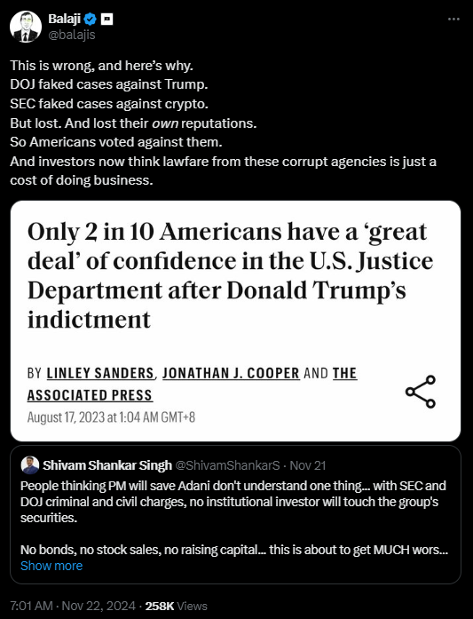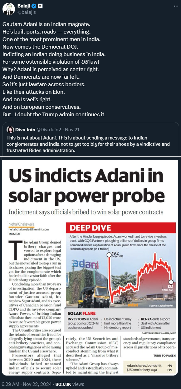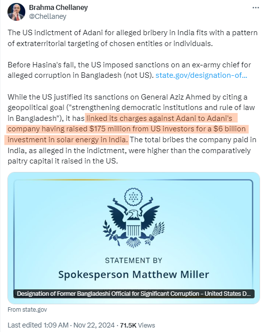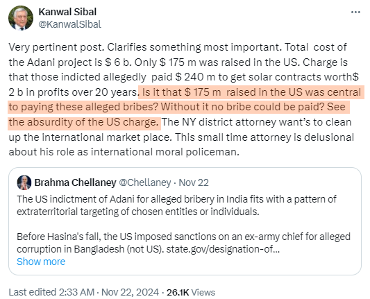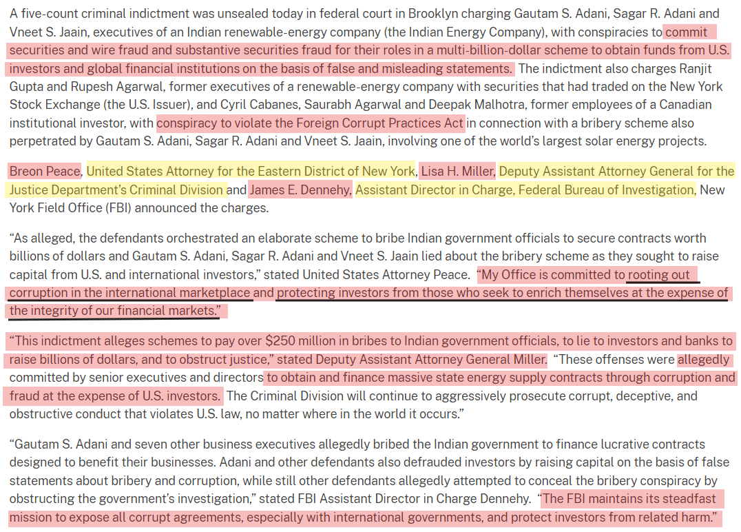 So to say that there is something off about this one particular case of Adani based on the allegations shared by the DOJ and SEC is just untenable.