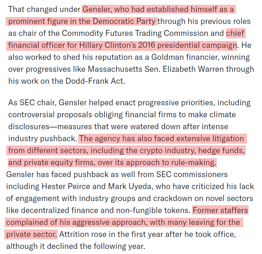 Gensler's aggressive stances also messed up his own staffers. He brought division in his department and corruption in rule-making.