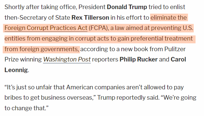 Also, in 2020 President Trump wanted to eliminate the FCPA because it held the American businesses back.