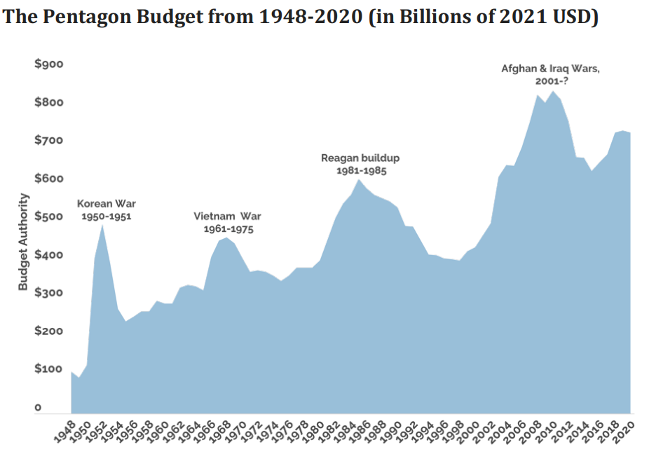 Just see the surge in Pentagon budget every time there was a war. And everytime that new high was eventually breached.