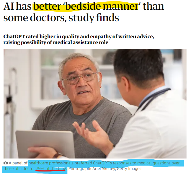 The current mechanisms that the medicine world came up with can easily lend themselves to a better "doctor" experience with an AI chatbot.