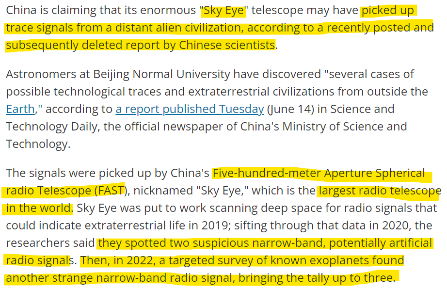 From 2019 through 2022, the astronomers at the Beijing Normal University claimed they had measured radio signal using China's Five-hundred-meter Aperture Spherical radio Telescope (FAST) (also called "Sky Eye") - the largest radio telescope in the world.