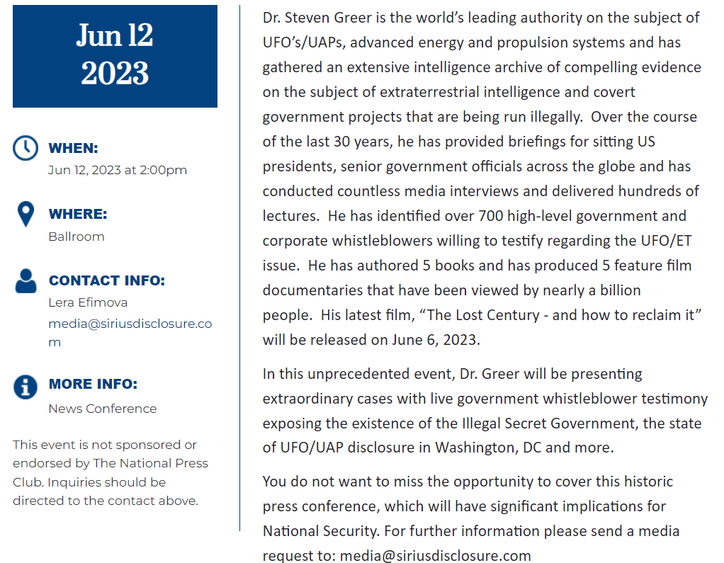 Dr. Greer is, what is commonly referred to as a "UFOlogist". He founded the Center for the Study of Extraterrestrial Intelligence (CSETI) and the Disclosure Project. In all this he and his friends have tried to seek the information on the UFO phenomena. On June 12th, 2023, Dr. Greer held a press conference at the National Press Club in Washington DC to share case studies and testimonies that put more light on this whole set of phenomena.