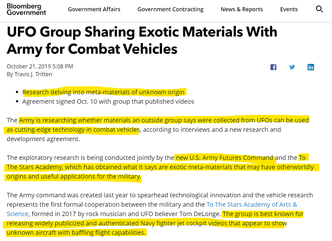 But this is not the only instance of the US defense organizations working with alien technologies and materials. In another case, a UFO group - who would in general interactions be dismissed for being conspiratorial - have been sought by the US Army for use in combat vehicles.