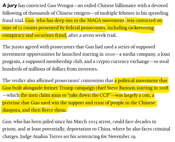 Interestingly earlier this year in June 2024, he was convicted by a jury of multiple felonies in a fraud trial.