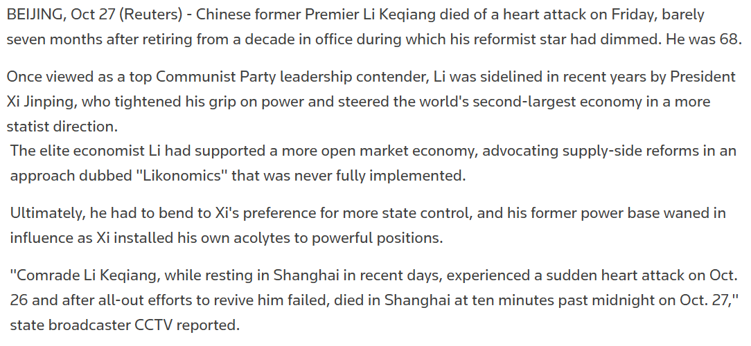 After his departure, Li Keqiang stayed out of the public eye, typical for retired Chinese officials. On October 27, 2023, news broke of his sudden and unexpected death in Shanghai due to a heart attack.