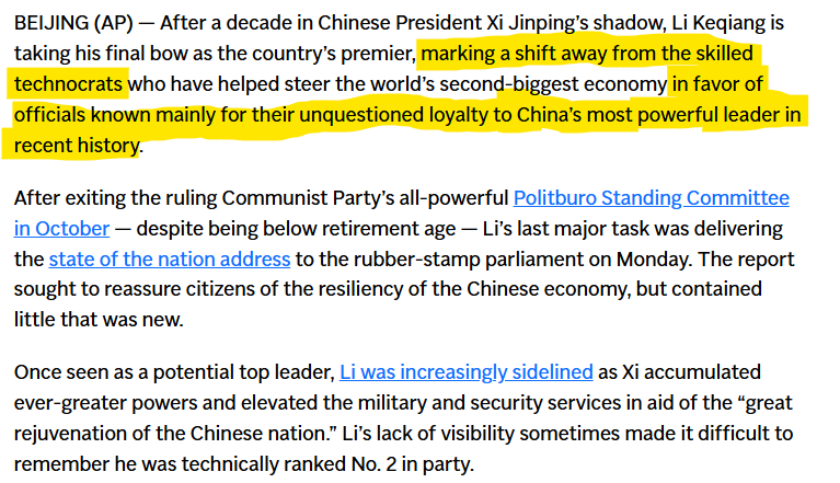 With Li, the era of skilled technocrats and economists at the top gave way to a Xi era of the loyalists.