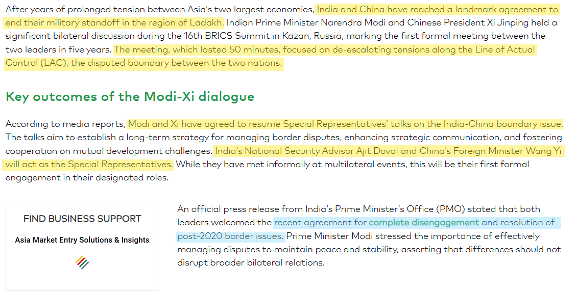On October 23rd, a major agreement took place between India and China. Disengagement - rather a complete disengagement at the border.