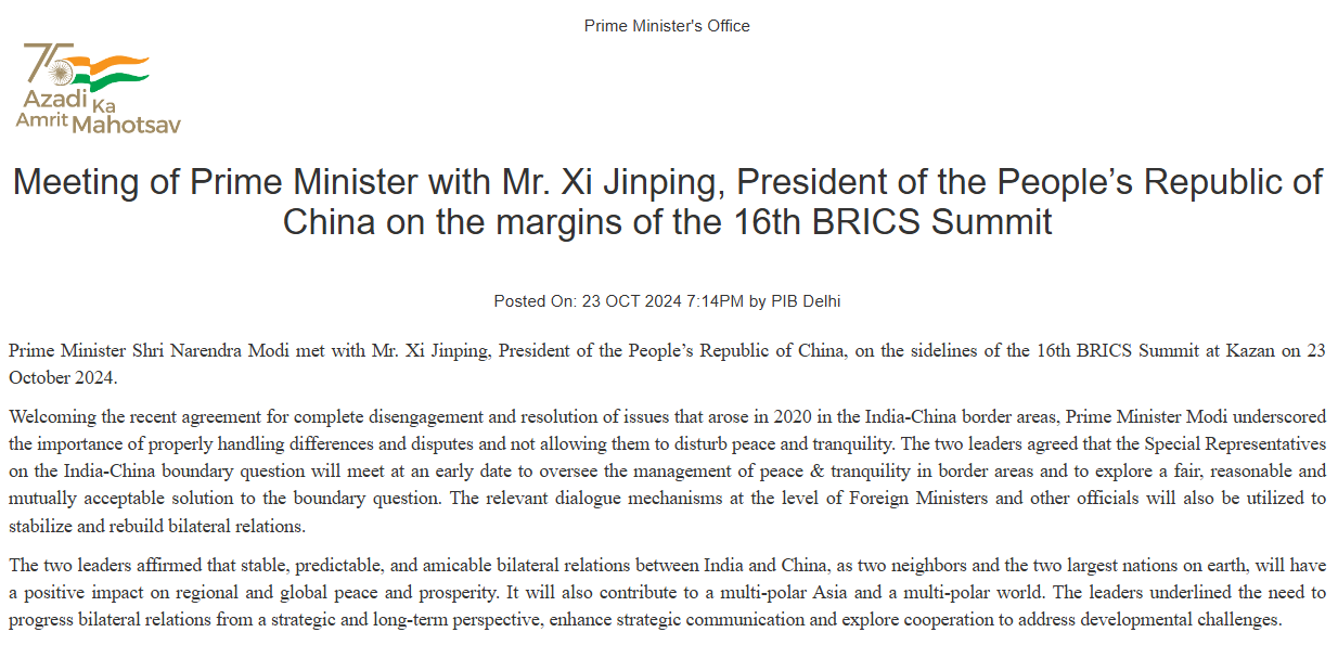 The recent India-China border agreement, signaling a reduction in military tensions, appears to have strategic undertones potentially supported by Russia. As Russia maintains close ties with both nations, it may have influenced their move toward cooperation, especially with a shared interest in reducing Western influence in Asia. By easing tensions at the border, India and China could shift focus to multilateral alignments, such as BRICS, where Russia also plays a key role.