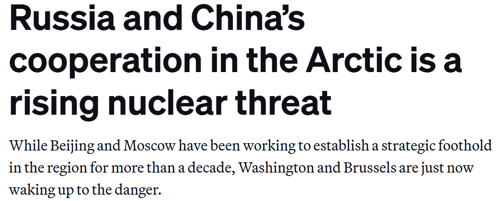 Earlier this month, Politico posited Sino-Russian cooperation in the Arctic as the greatest threat. A Nuclear flashpoint.