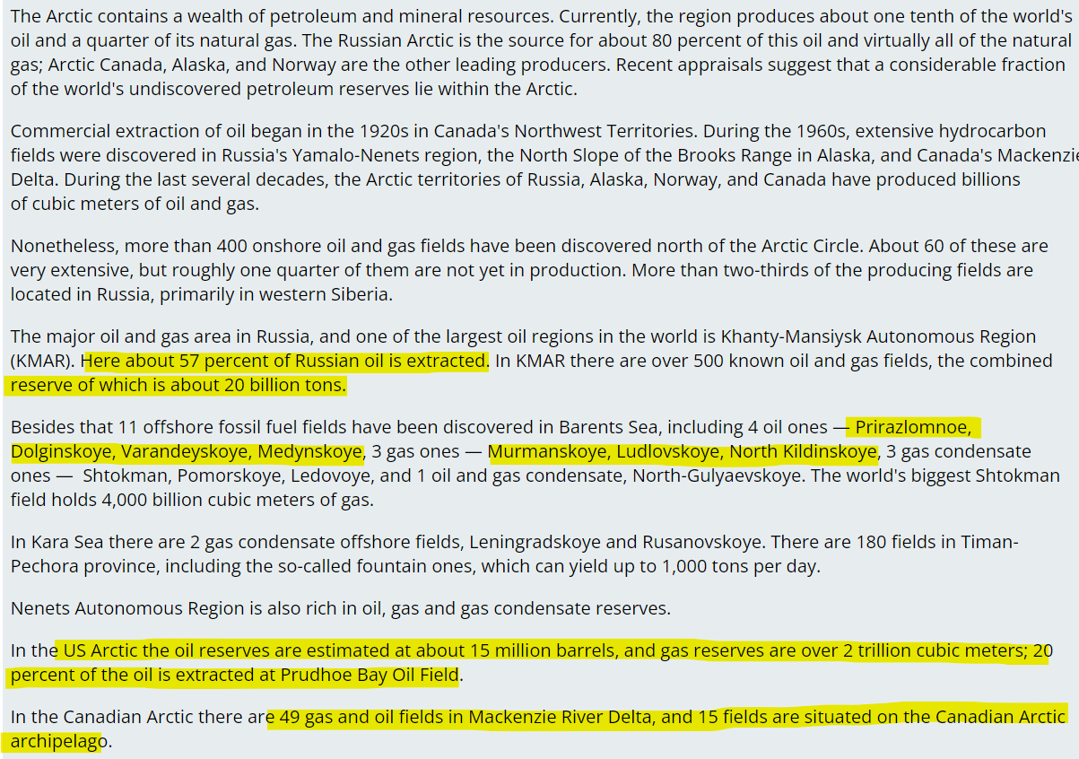 Also, significant offshore fossil fuel fields have been discovered in areas like the Barents Sea and Kara Sea.