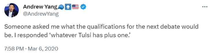 And, then they changed the rules on Tulsi at the last moment for the other debates.