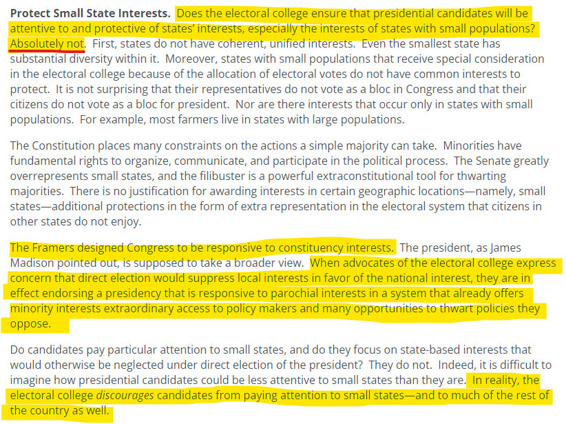 As this article on the Cambridge Press site details - the Electoral College is designed from the ground up to have a President who is totally blind to the needs of the smaller states. 39 of them as we know it!