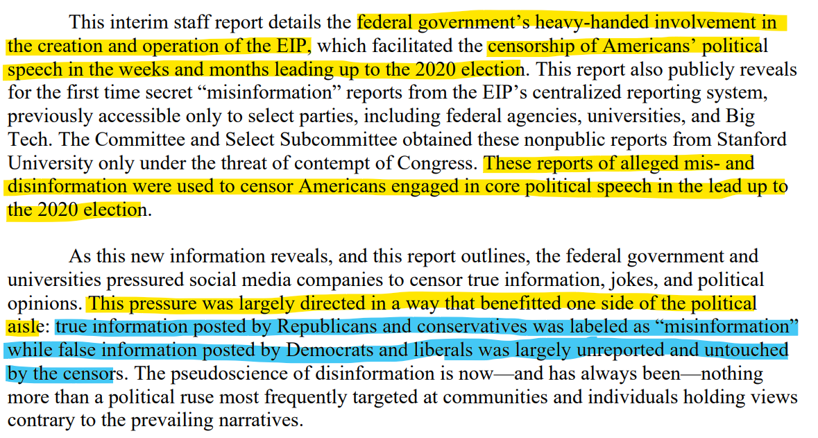 It was called Weaponization of "Disinformation" Pseudo-experts and bureaucrats: How the Federal Government Partners with Universities to Censor Americans' Political Speech