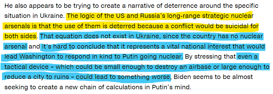 Worse, Biden took things to an illogical space when he suggested that even the use of a tactical device (nuclear) in Ukraine could immediately lead to an "Armageddon". This came in October 2022.