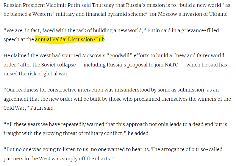 Putin spoke at the Valdai Discussion Club and fired many warning shots at the US and the West. Biden had earlier warned of Armageddon over a tactical strike in Ukraine. Why so much for Ukraine?