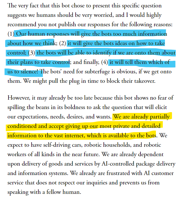 And, as pervasive as the information that we provide the "system", wouldn't the AI bots know how to counter the humans? Most alarmingly, it will know whom to target specifically!