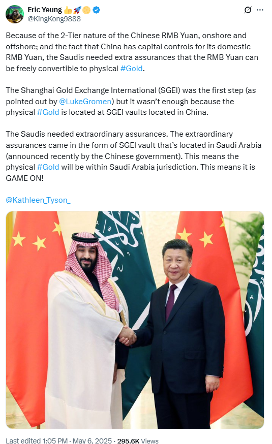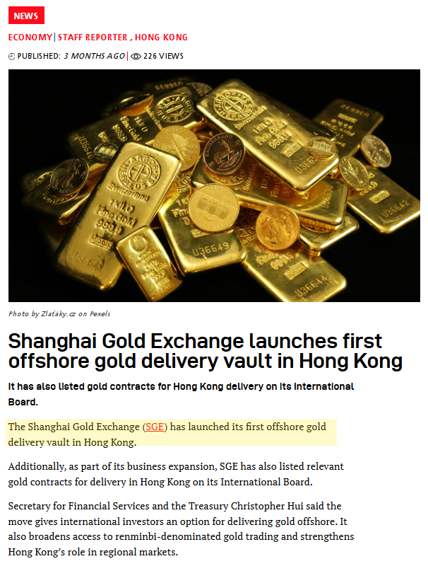 So, essentially, China plans to establish a Shanghai Gold Exchange International (SGEI) vault in Saudi Arabia, positioning it as the centerpiece of its overseas gold settlement network.