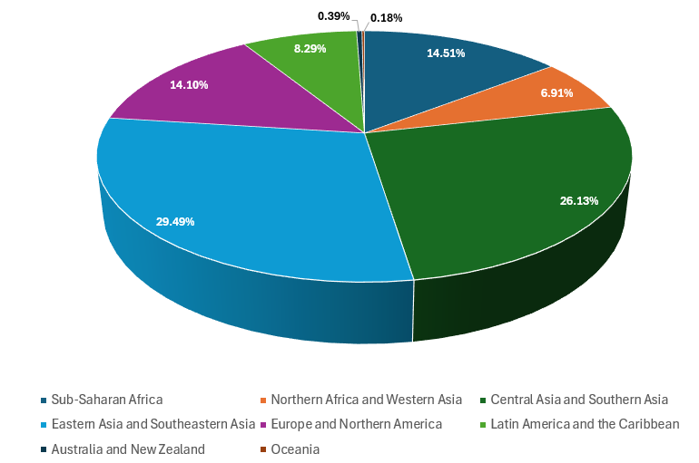 The population distribution by major regions presents a fascinating and sobering realization.