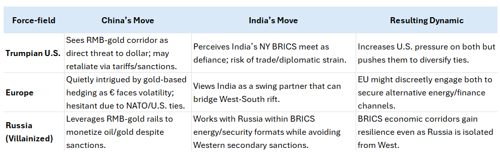 Together, these initiatives highlight a shifting order: China is building new financial infrastructure to challenge dollar hegemony. At the same time, India asserts diplomatic independence to shape global norms—both recalibrating power dynamics in a fractured world.