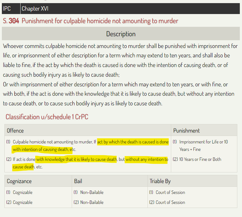 So when the act is done with the knowledge that it is likely to cause death but without intention to cause death then it is 10 years.