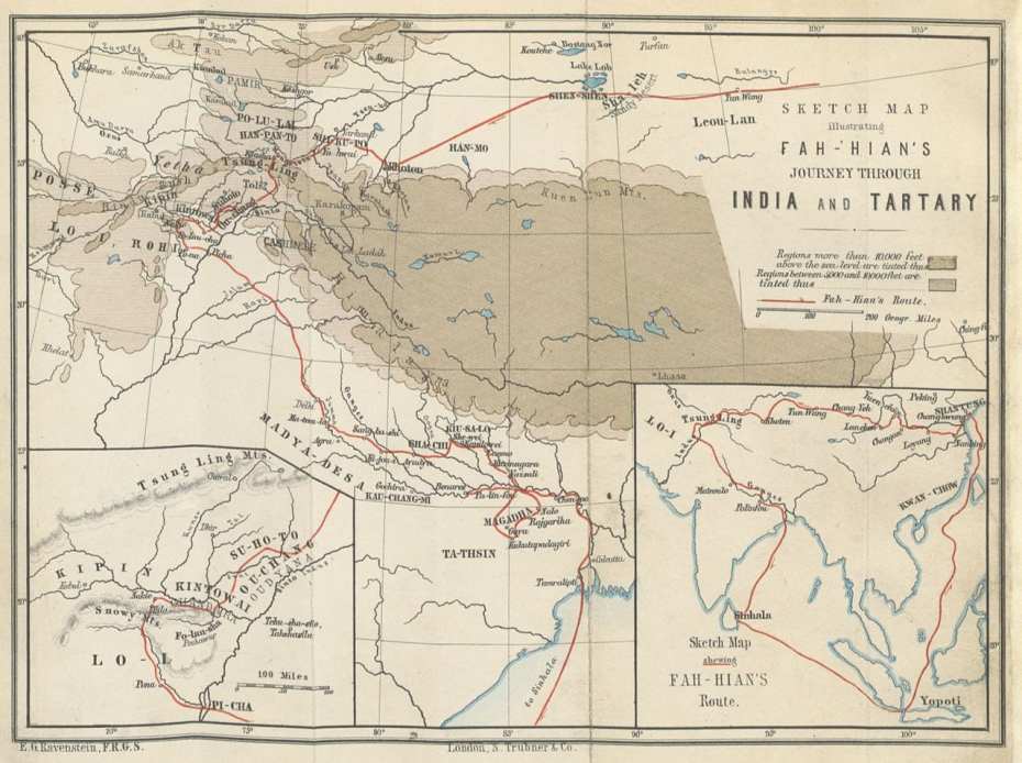 Faxian was over 60 when he left Chang’an on his long, dangerous journey through Gobi desert, Kazakhstan entering India via Kashmir. Then walking down all the way to Mathura, Pataliputra (Patna) and Madhya Pradesh region. He later left on ship back to China. Imagine the level of difficulty when he would have decided to go through the desert, the cold and harsh Himalayas and then return via the tough, stormy seas.