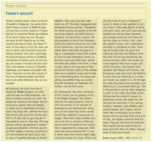 Faxian describes the India he saw at that time. And, he shared that in his account called Gooseng Faxian zhuan (A Record of Buddhist Kingdoms).