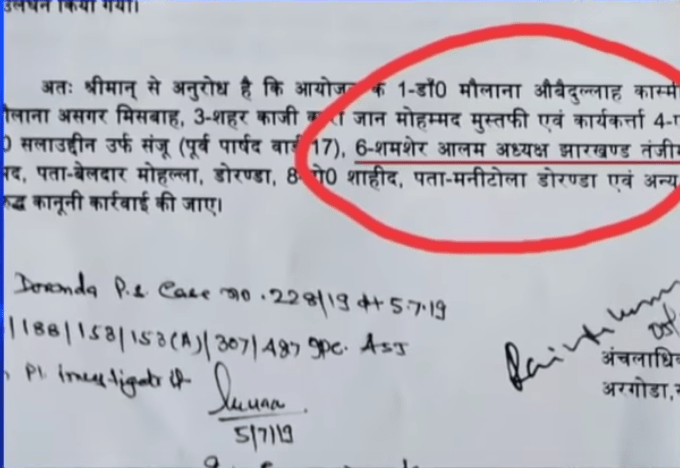 The FIR clearly states that Shamsher Alam, the Congress Spokesperson in Jharkhand was responsible for inciting the Muslim mob to target Hindus and destroy public property.