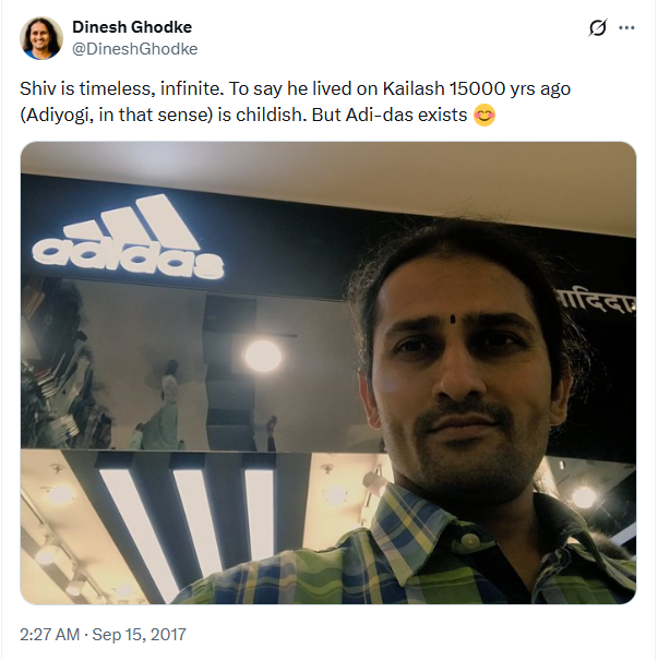 3. Desecration-by-Humor - The "Adidas" Tactic: Please see clearly, and you will immediately notice that the quip "Adiyogi is delusion, Adidas is reality" is not a mere critique.