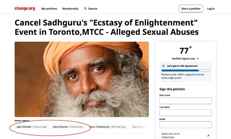 A senior Art of Living teacher, Julia, who is ostensibly close to Sri Sri Ravi Shankar, initiated an open campaign to sabotage the program.