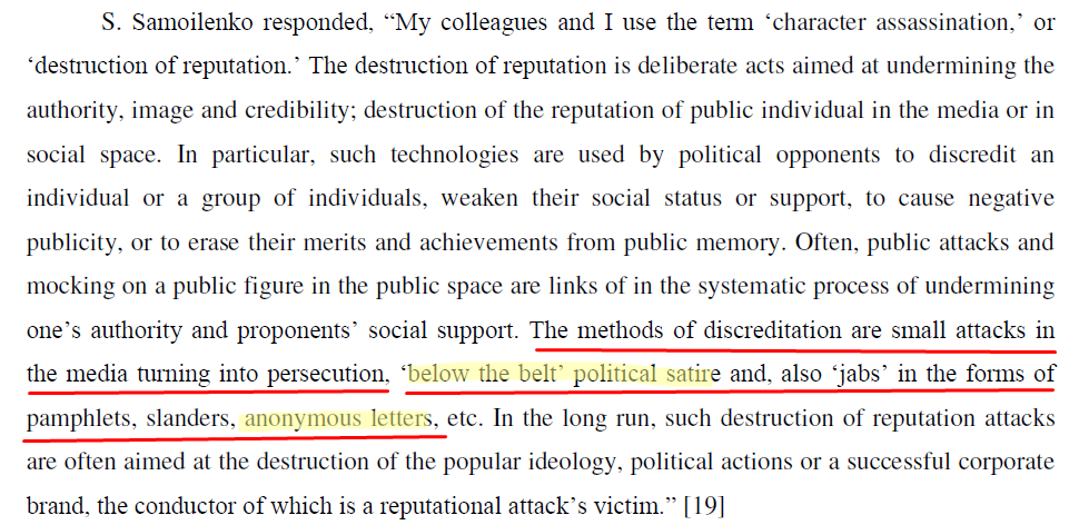 A doctoral thesis (see the extract below) examines character assassination as a deliberate tool in international politics, focusing on U.S.–Russia relations over nearly a quarter-century.