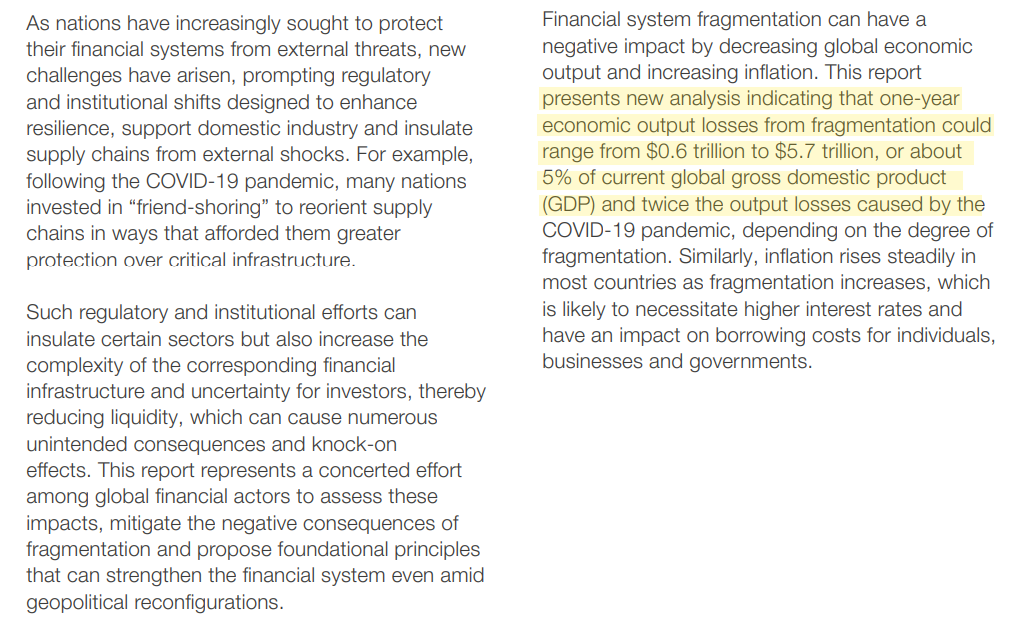 This response from China, Russia and the other BRICS countries, where the Global South increasingly intends to inoculate itself, is being termed by the World Economic Forum as "Financial System Fragmentation."