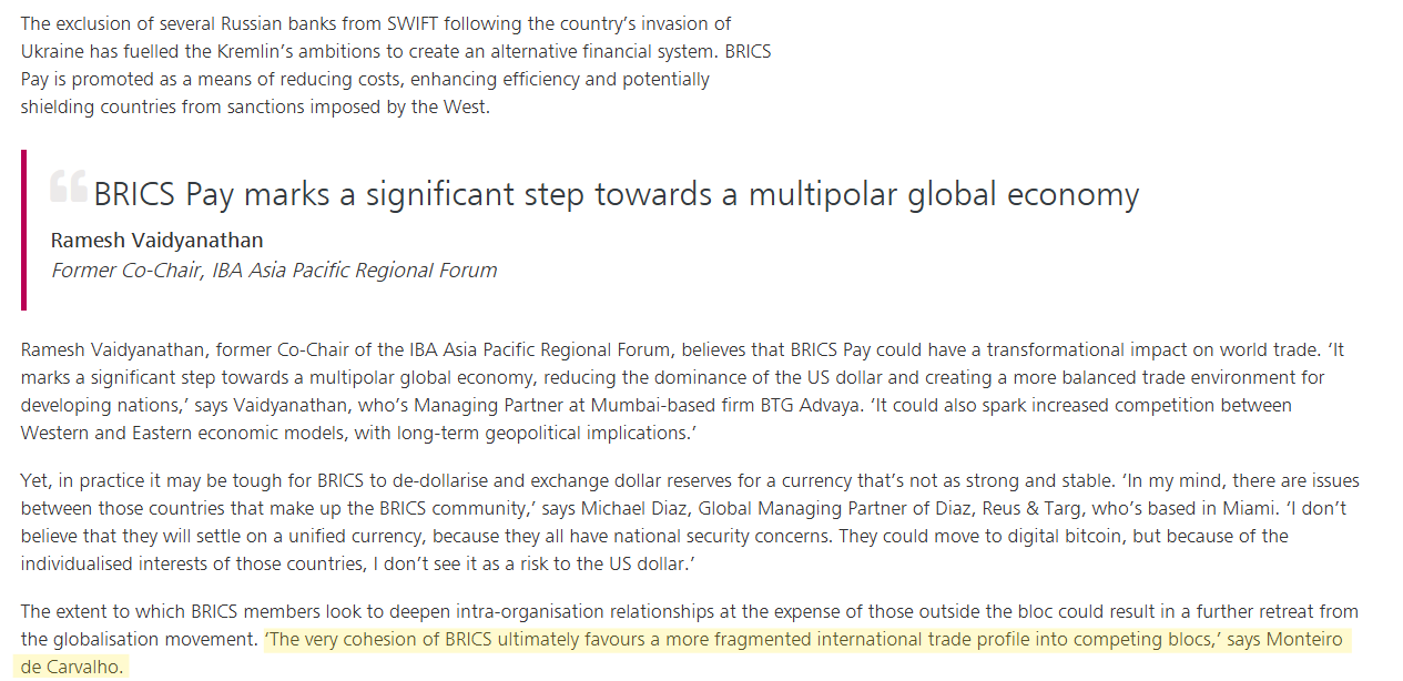 As an International Bar Association analysis noted, BRICS efforts like BRICS Pay “mark a significant step towards a multipolar global economy, reducing the dominance of the US dollar”.