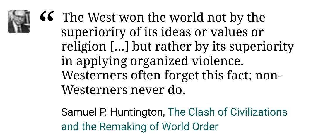Huntington counters that what made the West dominant was not persuasion or cultural attraction, but raw military and technological superiority in organized violence.