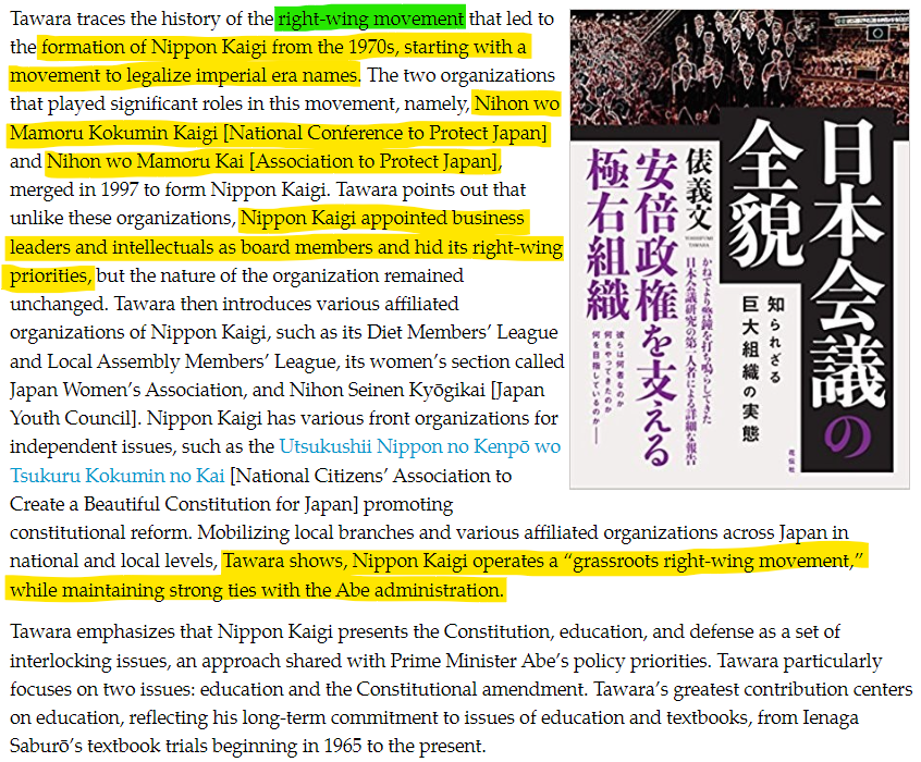 Tawara Yoshifumi has written a lot of books on Nippon Kaigi and most of his critique seems to be characterized by the words that have been used since World War II to paint someone as evil: Right-Wing, Revisionist, Anti-women, Nationalist. Does that seem familiar?
