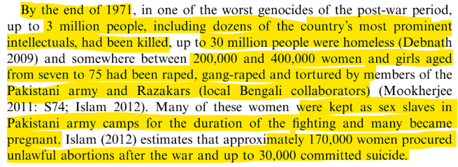 While we are at the question of mass murders, massacres, and mass rapes, it would be interesting to note that in the run-up to the 1971 Indo-Pakistan war (and the liberation of Bangladesh) the Pakistani Army killed over 3 million people. Predominantly Hindus!