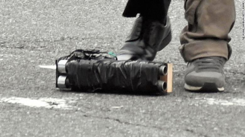 It had "two cylindrical metal barrels wrapped in black tape". The bullets were inserted inside the pipes and the bullets were created from the parts bought online.