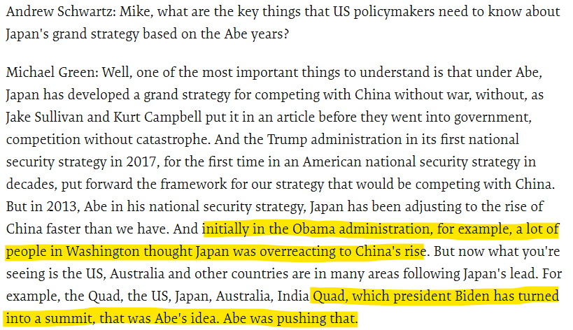 Not just Quad, but the "Free and Open Indo-Pacific" framework was also Abe's brainchild.