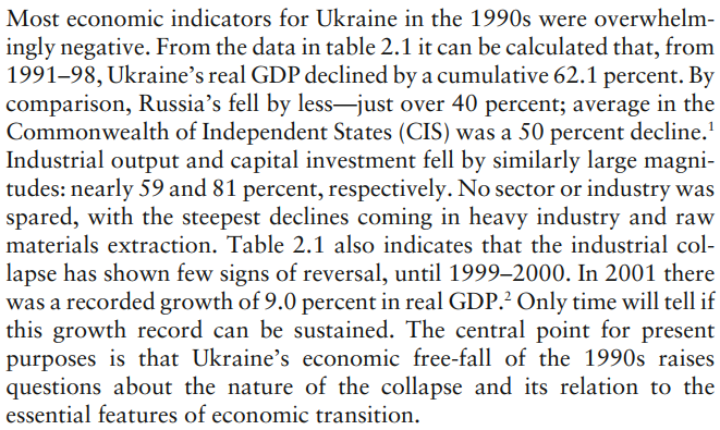 In the very first decade - from 1991 through 1998, Ukraine's GDP declined by a whopping 62%! Capital investment went down by 81%.